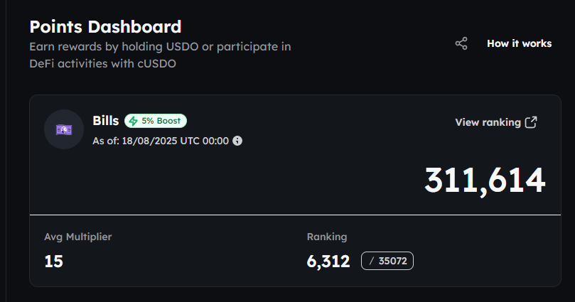 钱包单纯持有USDO,或者使用cUSDO来参加DEFI如质押,提供流动性,都可以获得 Bills..