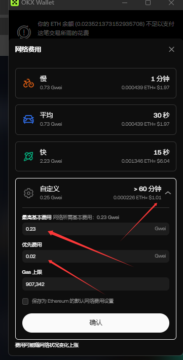 如果主网gas太高,可以等半个凌晨,gwei 0.2以下再来操作。大概只花1刀。OKX预估的GAS会偏高,大家可以一边看链上的GAS来操作。如果链上GAS太高,你改了也没用会一直不成交的。只有链上在0.2左右的时候,就可以依据那个来改。否则改了会等很久才会成交。