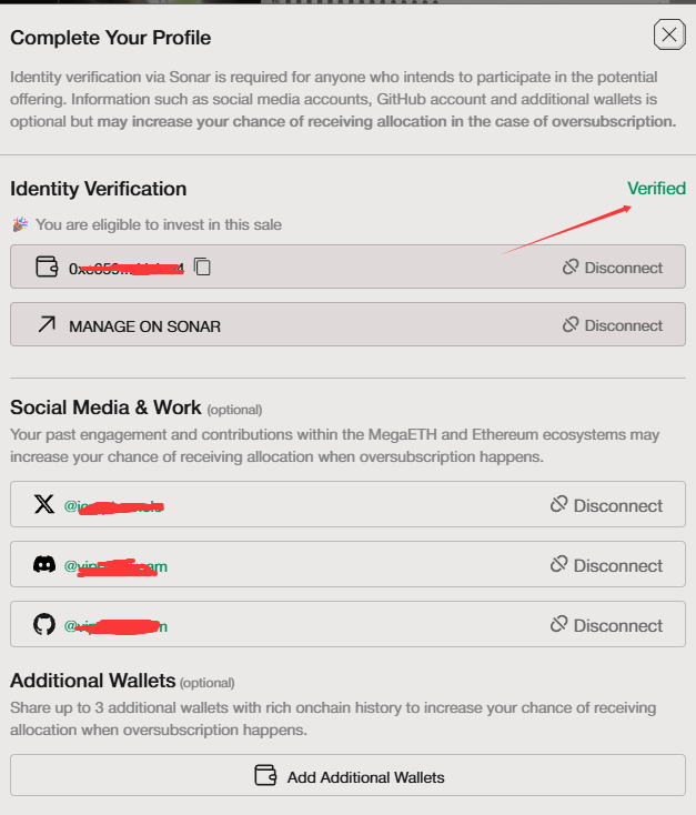 连接sonar就是连刚才的echo账号,连接上面绑定的钱包。正常就会显示验证通过。
